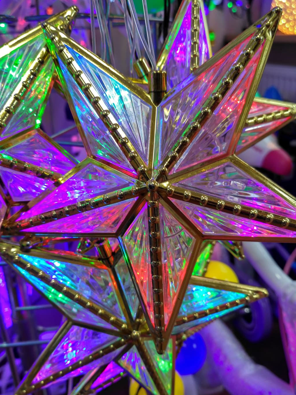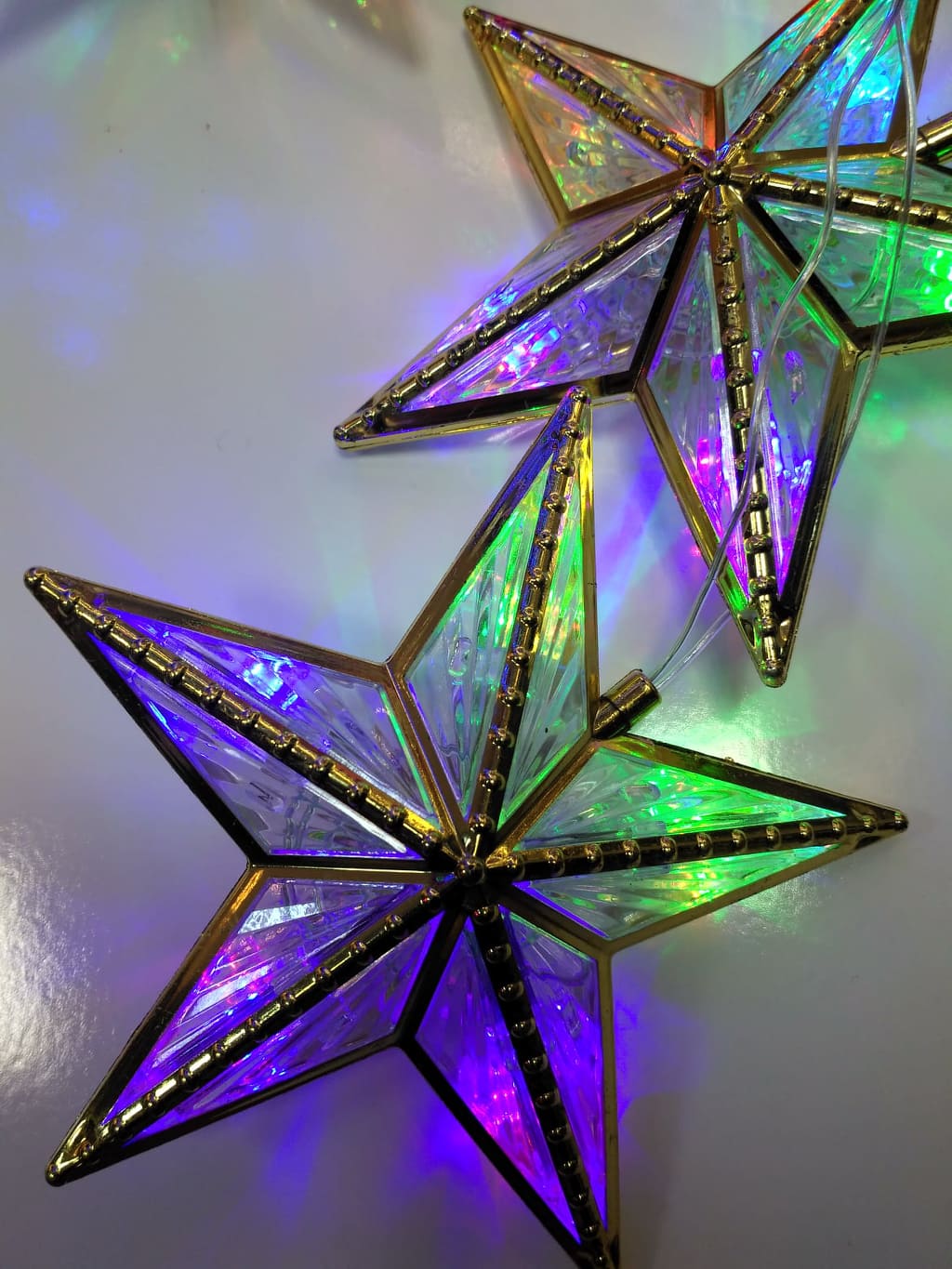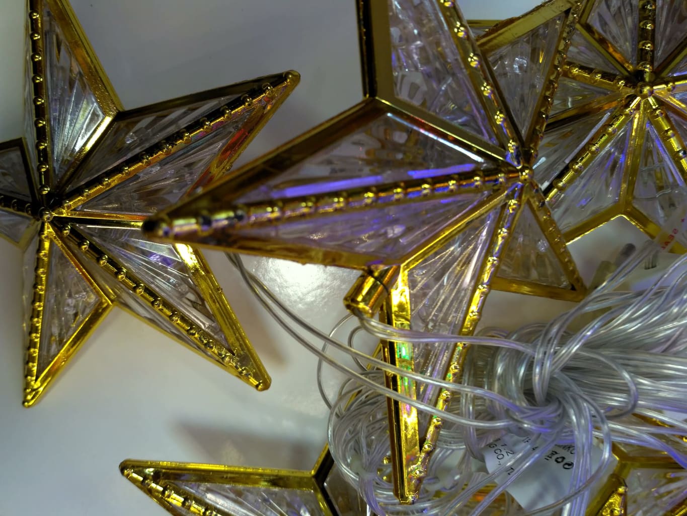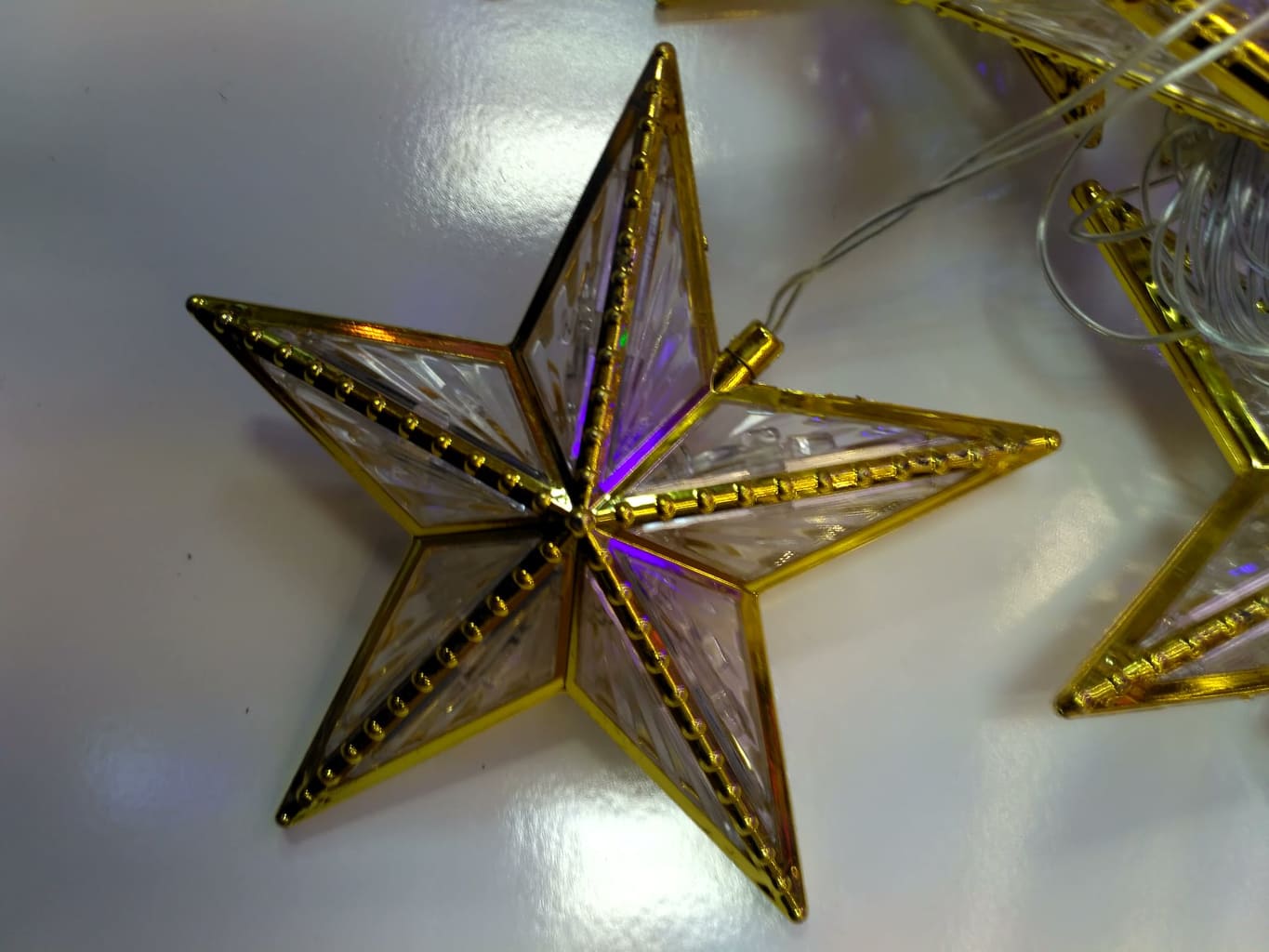 Girliandą sudaryta iš 6 penkiakampių žvaigždių: 15,5x4cm