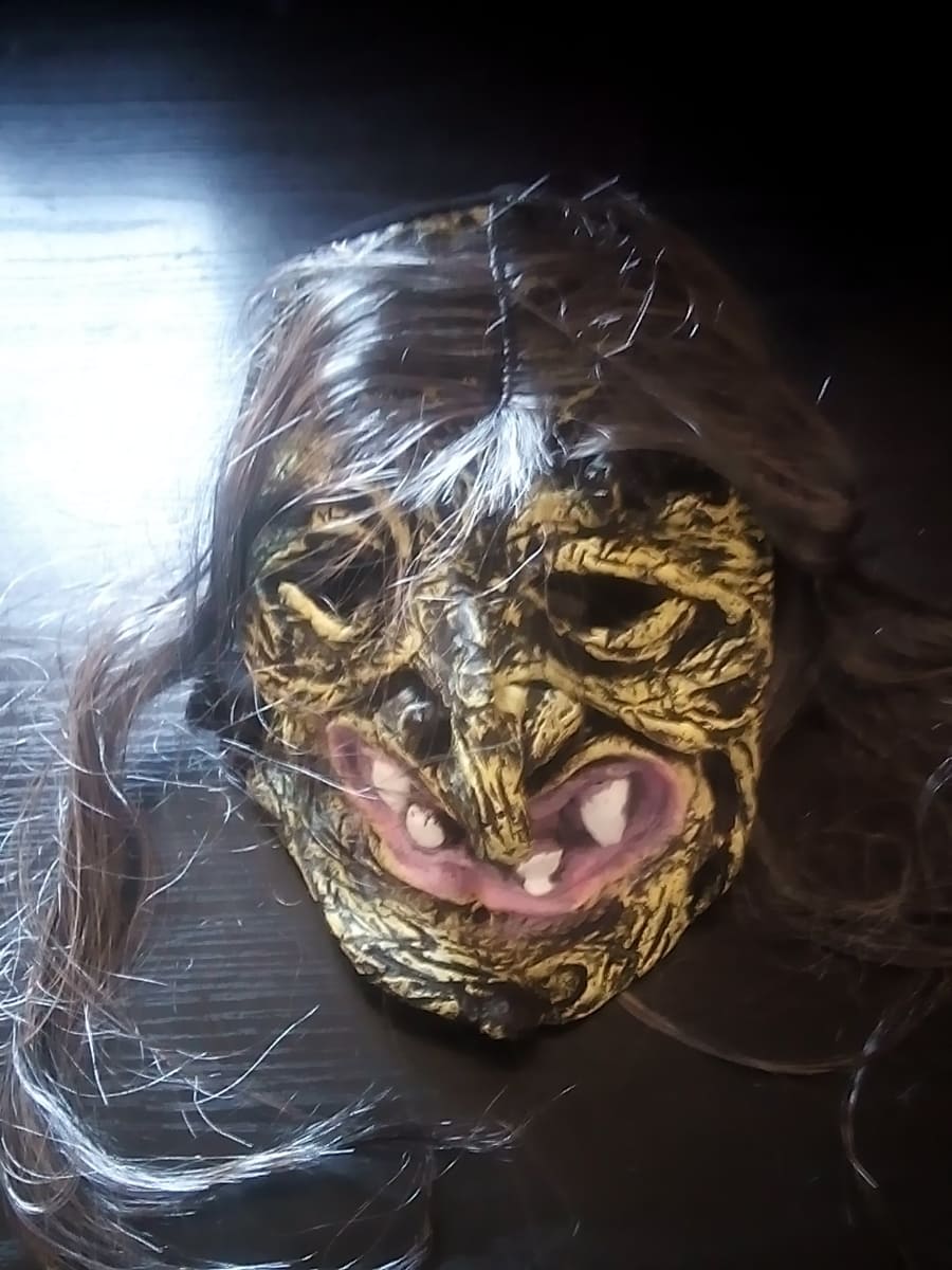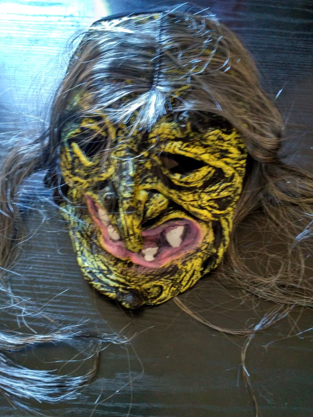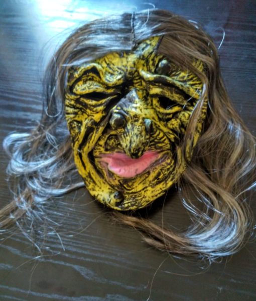 Latekso, bedantės, su dantimis raganos kaukės su plaukais.