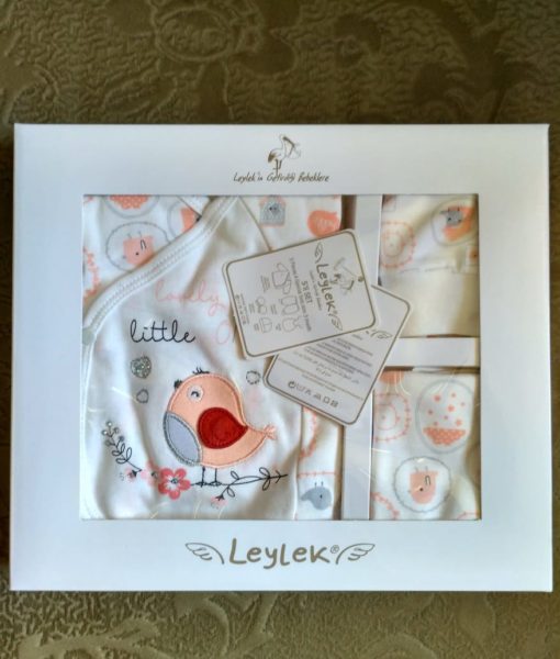 Kokybiškas 100% medvilnės kraitelis kūdikiams. Puiki dovana lankant naujagimį. 5 dalių kraitelyje yra viršutiniai marškinėliai, kelnytės su pėdutėmis, seilinukas, pirštinytės, kepurytė. Rūbeliai tinka nuo gimimo iki keturių mėnesių. Spalvos: rožinė, turkio, oranžinė.