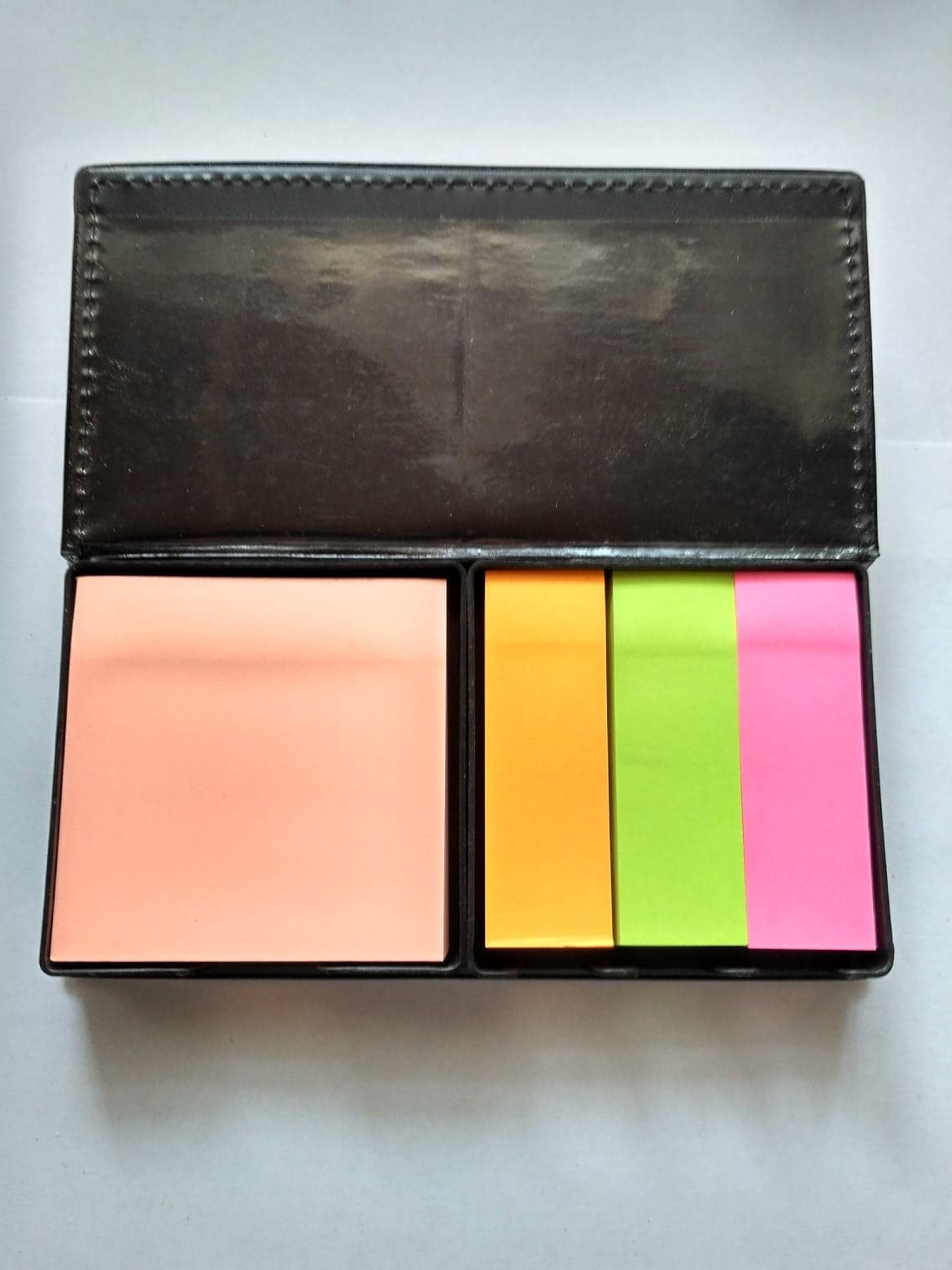 Reklaminis bloknotas, kurį sudaro lipniūs lapeliai ir 4-ių skirtingų spalvų skirtukai.