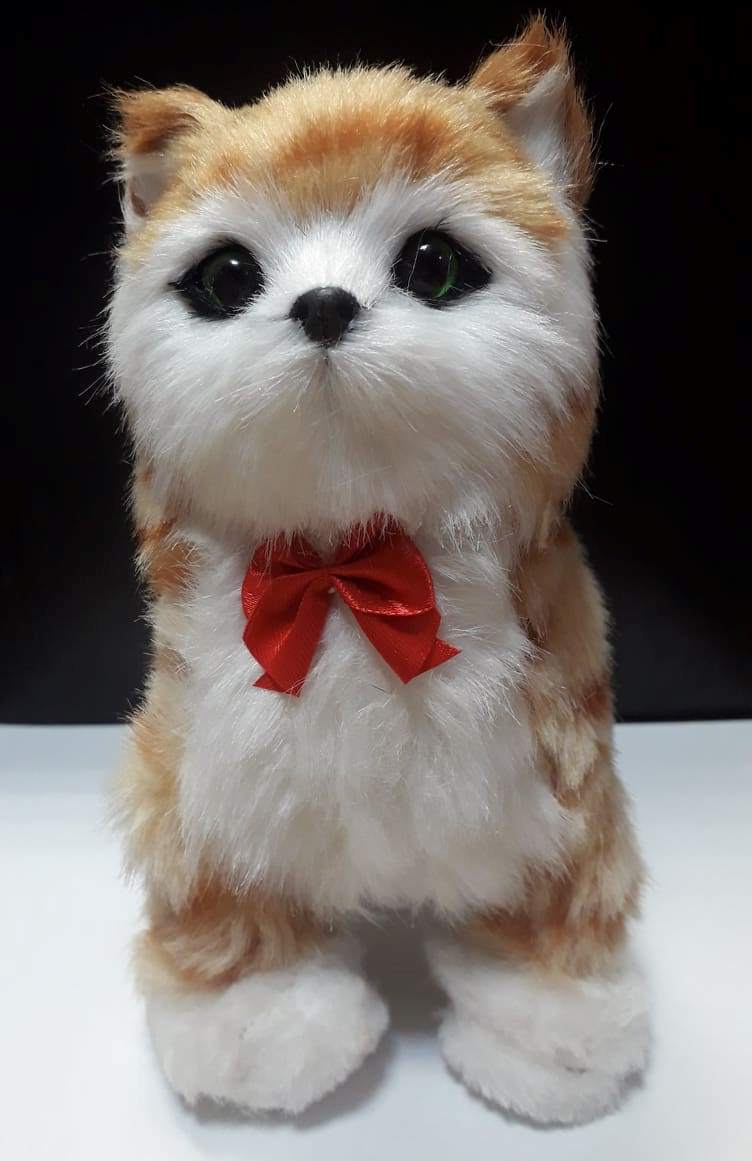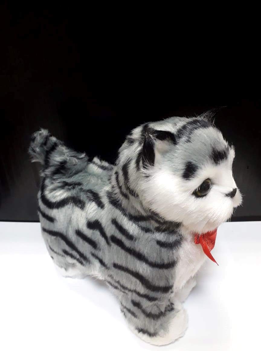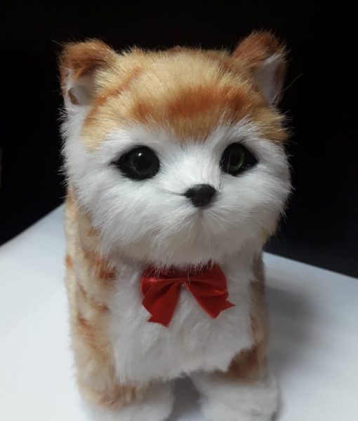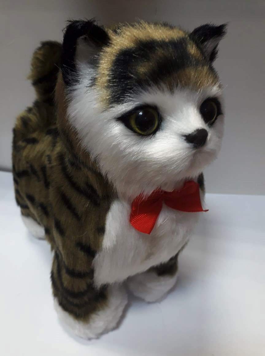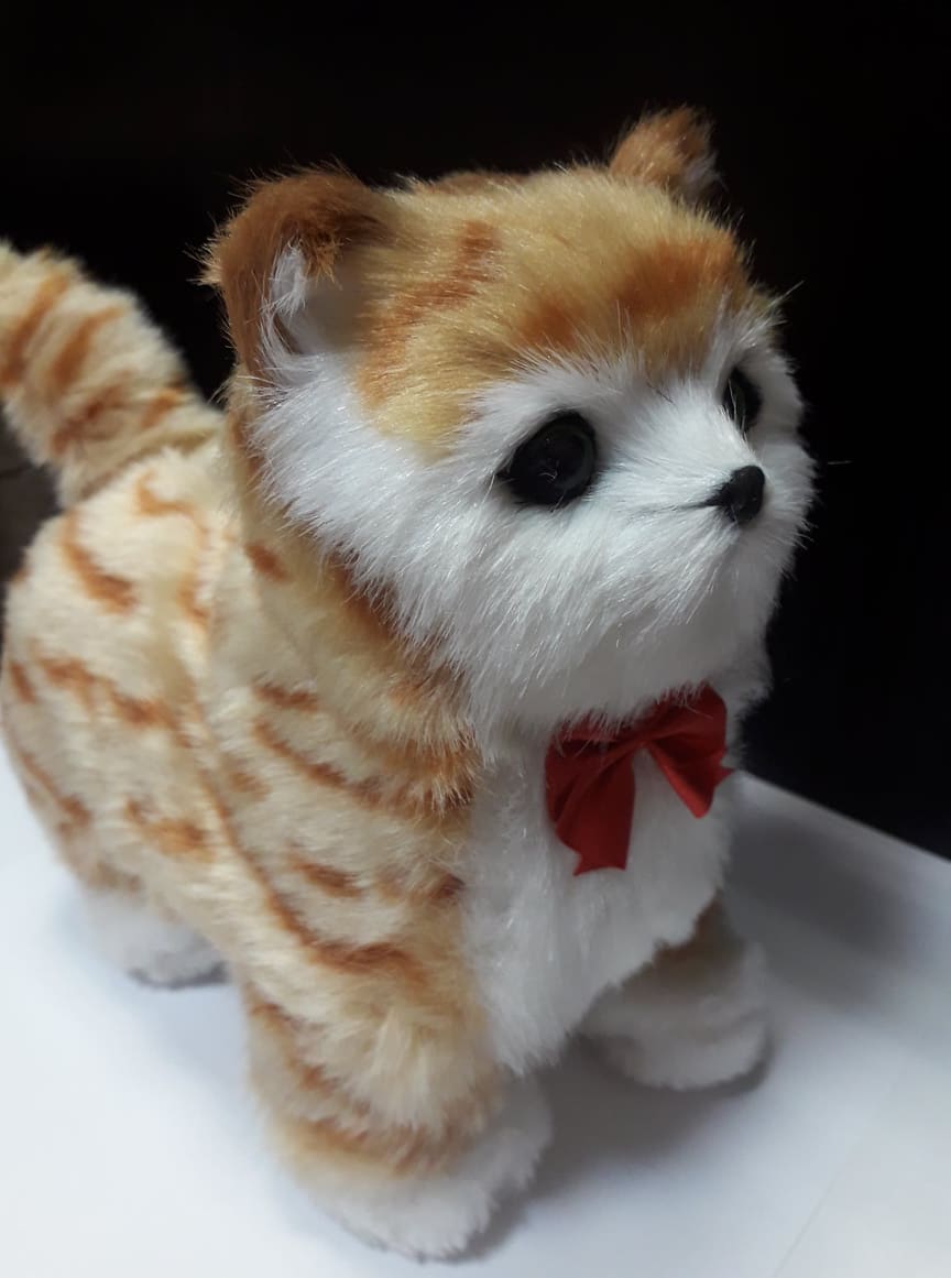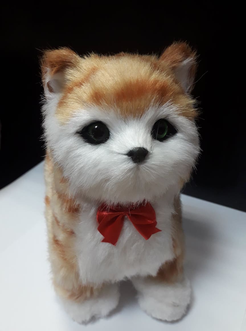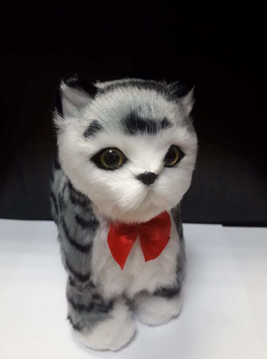 Veikimas: paspauskite kairiojo šone įmontuotą jungiklį, katinas pradės judėti pagal instaliuotą muziką, kai norėsite kad nejudėtų, paspauskite jungiktį dar kartą. Katinas turi 2 funkcijas: 1. paspaudus juda, 2. suplojus, prilietus katinas murkia – judina juodegą ir galvą.