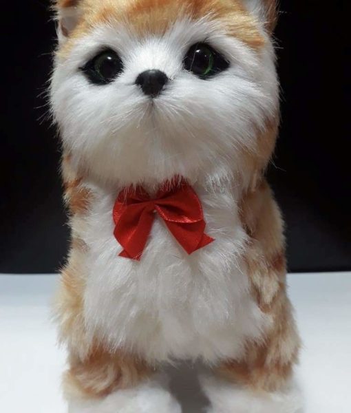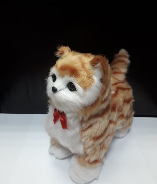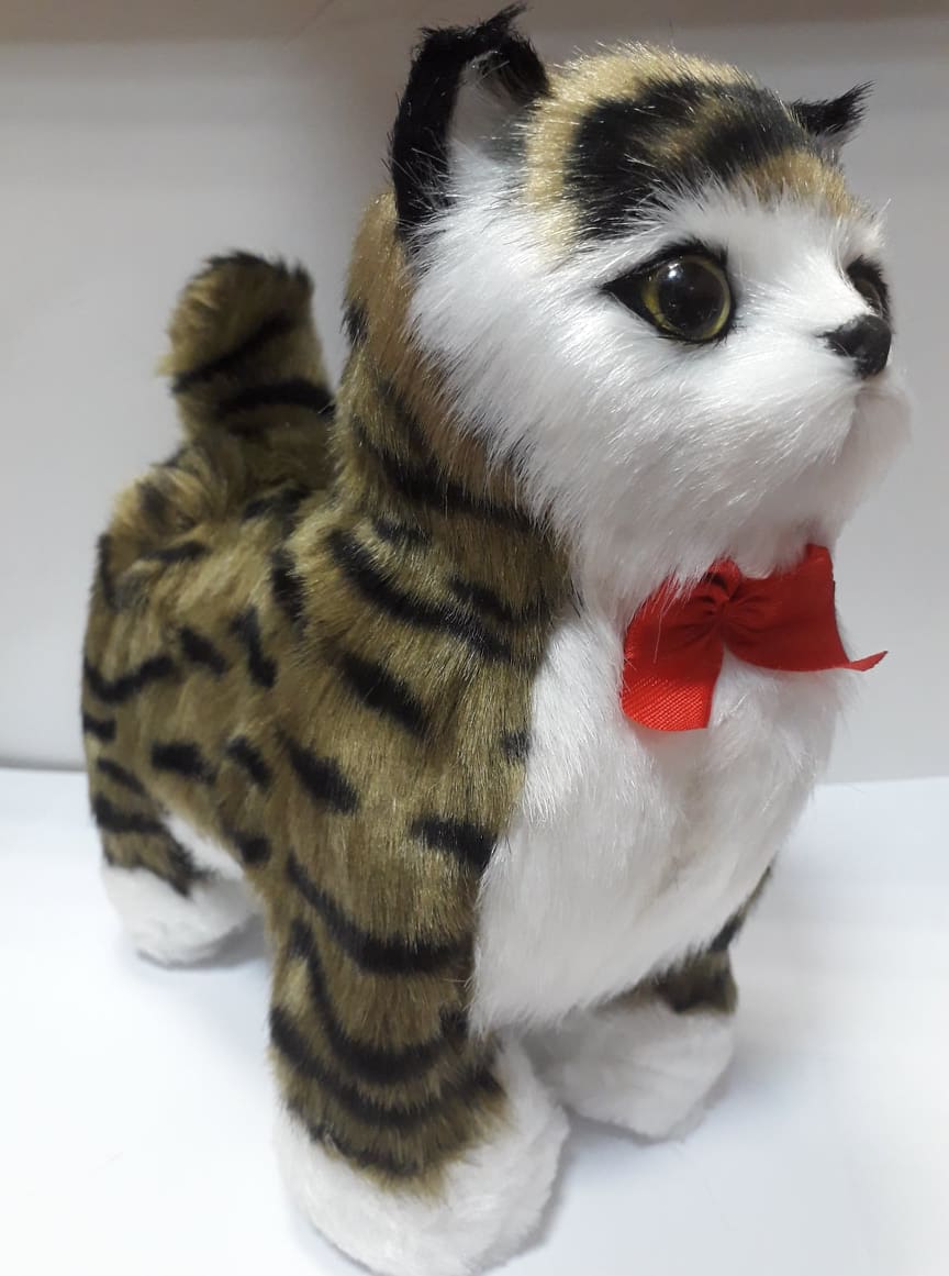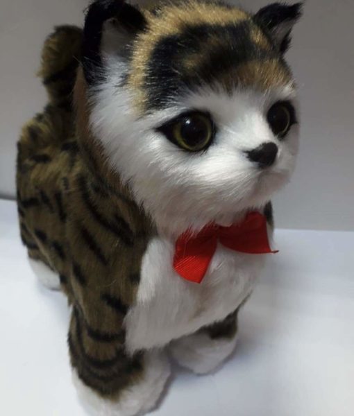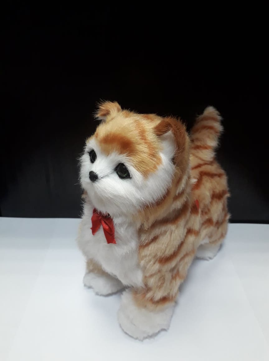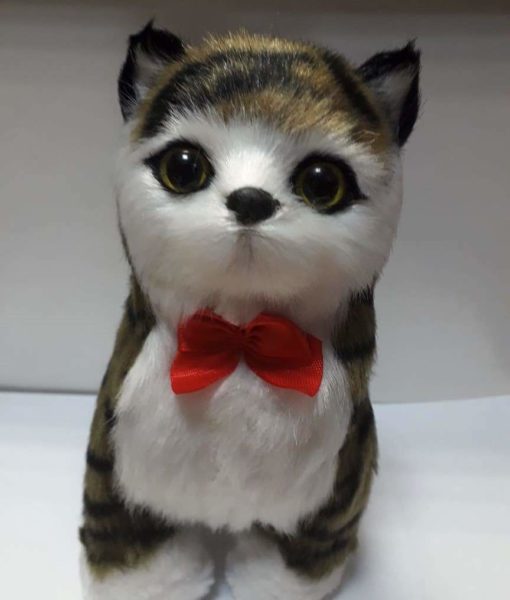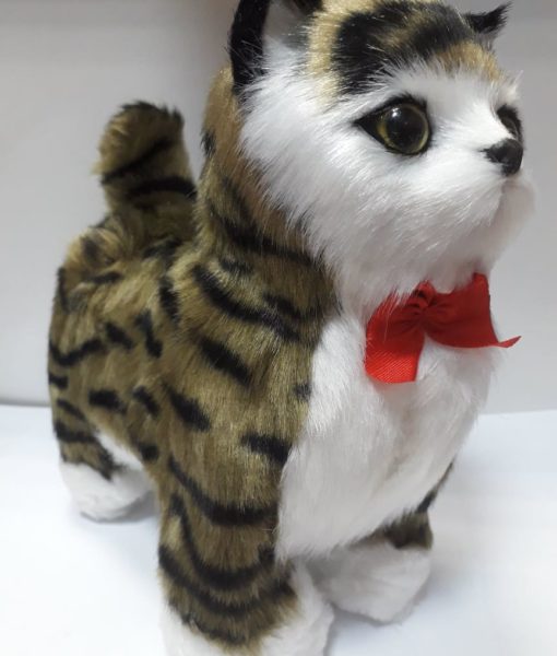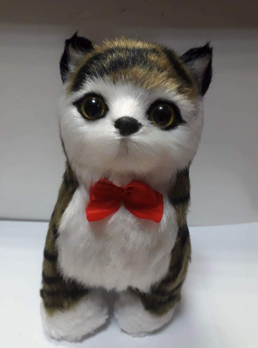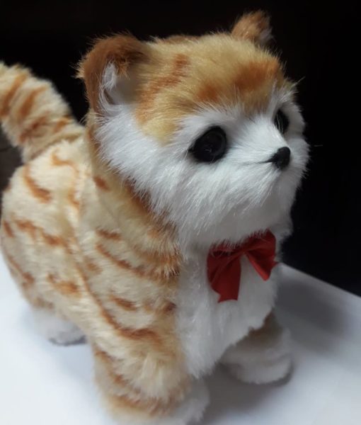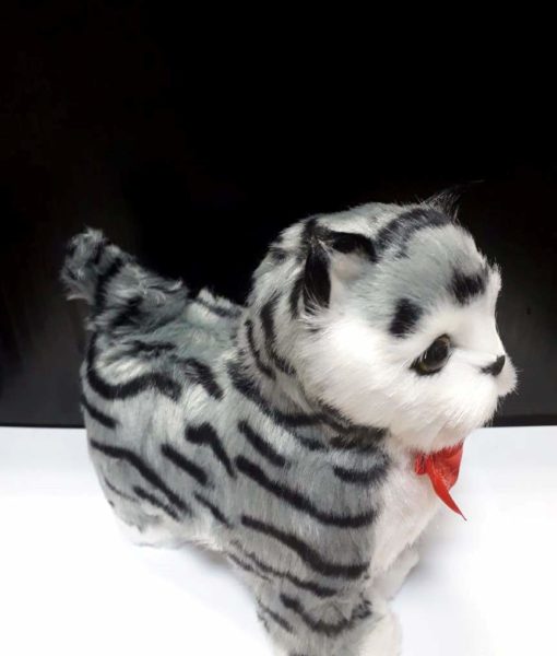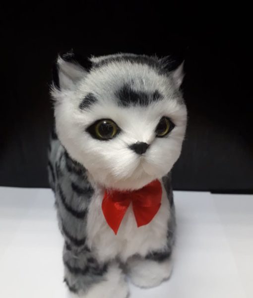 Veikimas: paspauskite kairiojo šone įmontuotą jungiklį, katinas pradės judėti pagal instaliuotą muziką, kai norėsite kad nejudėtų, paspauskite jungiktį dar kartą. Katinas turi 2 funkcijas: 1. paspaudus juda, 2. suplojus, prilietus katinas murkia – judina juodegą ir galvą.